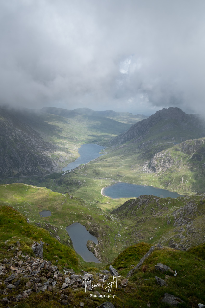 We reached the peak about 2 1/2 hours after starting and enjoyed a bite to eat whilst sheltering from the wind, we chatted a few times about the other routes in the area and our choice of descent route, in the end, deciding that despite the weather starting to clear we were not 100% confident the Devils Kitchen would be the right way down. After taking a few shots around the ridge, we started to make our way down, it was at this point we saw something you never want to see in the mountains; the Mountain rescue helicopter heading across to the slopes of Y Gribin, a ridge that leads up Glyder Fawr.