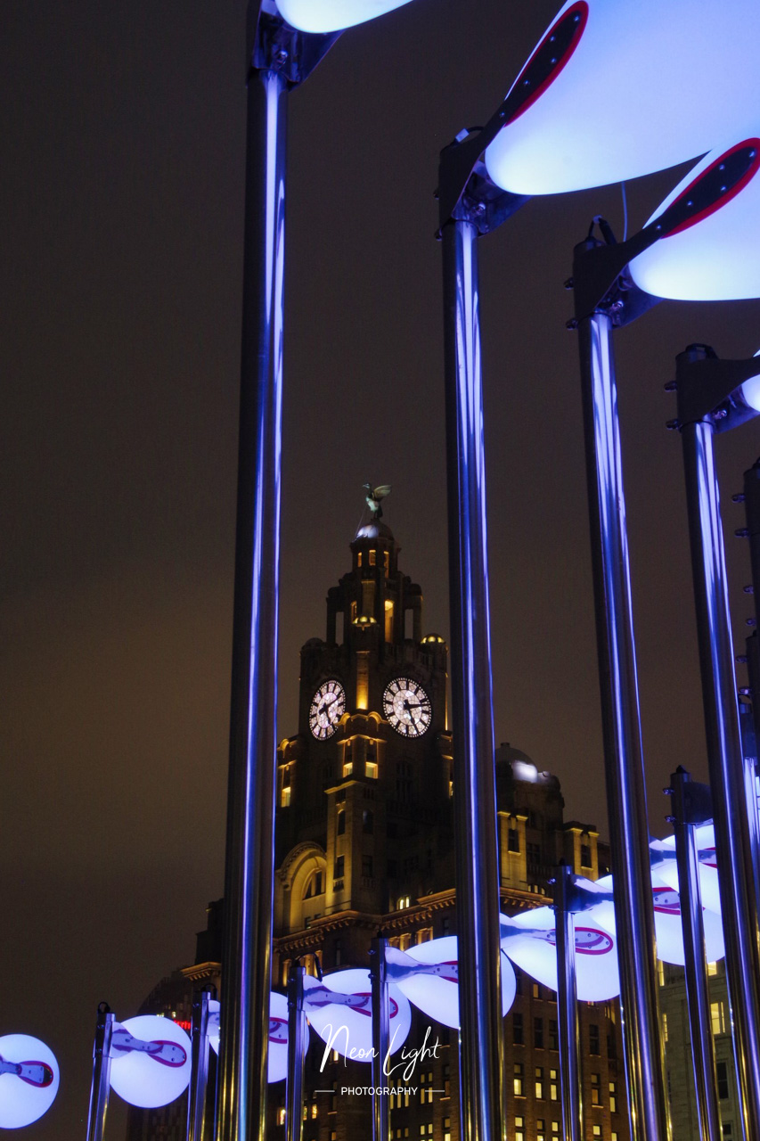 The Liverpool River of Light is a public artwork celebration held every year in October across the Liverpool waterfront. The event brings artists from across the world to the city to display their illuminated public artworks.